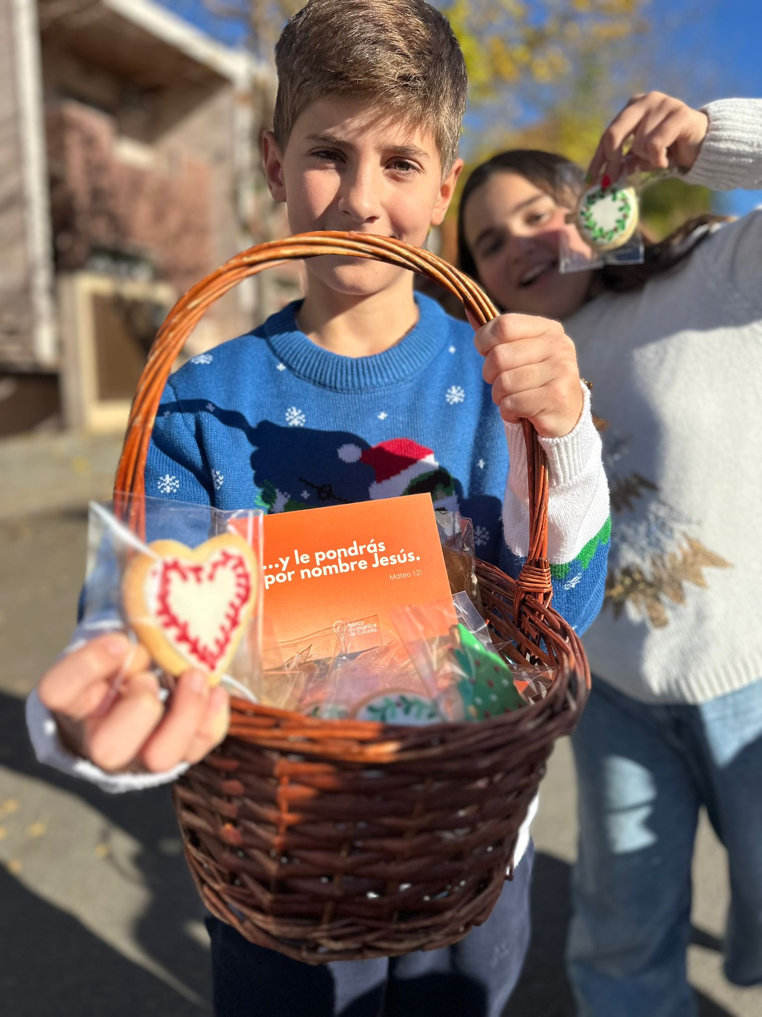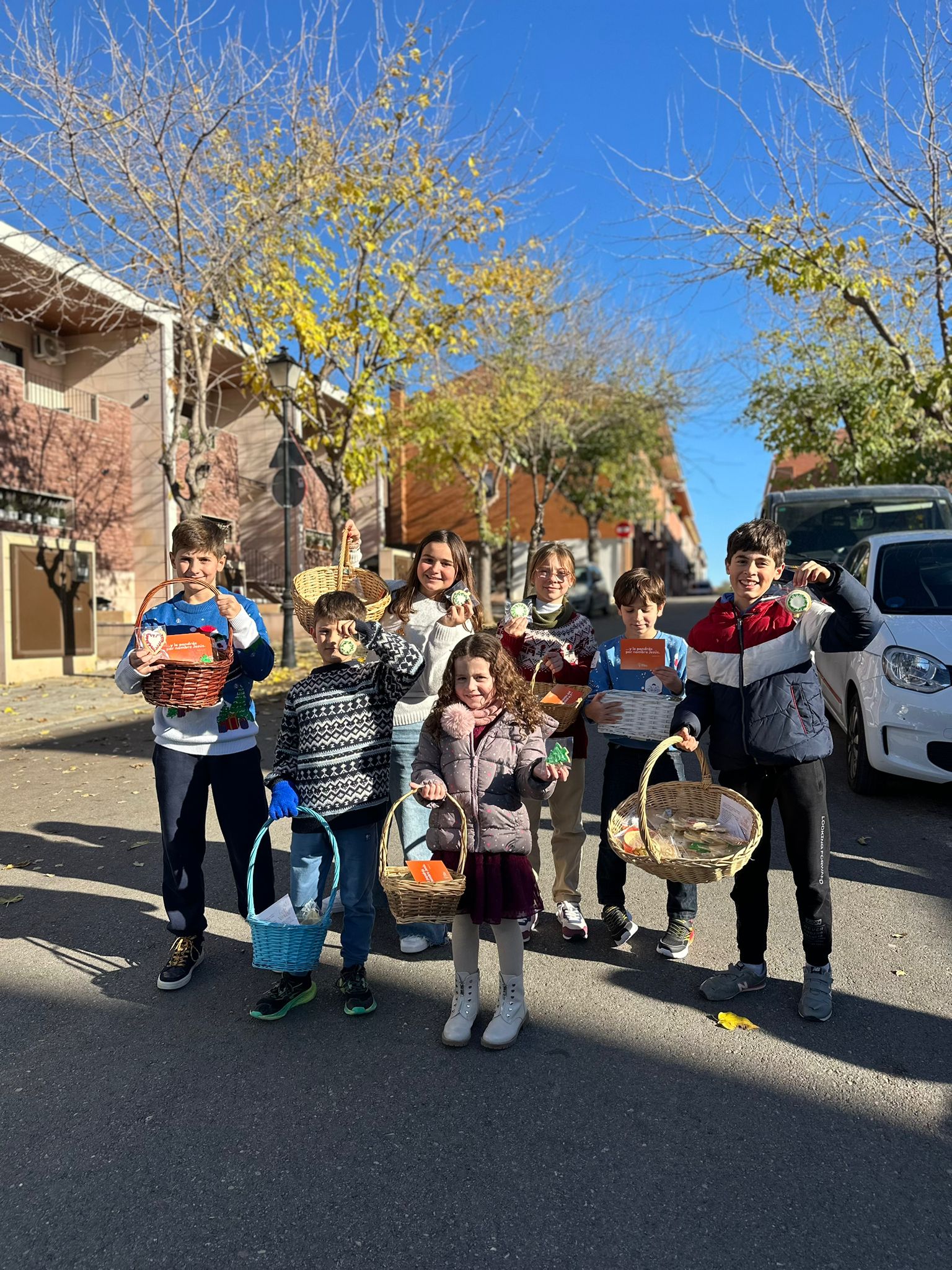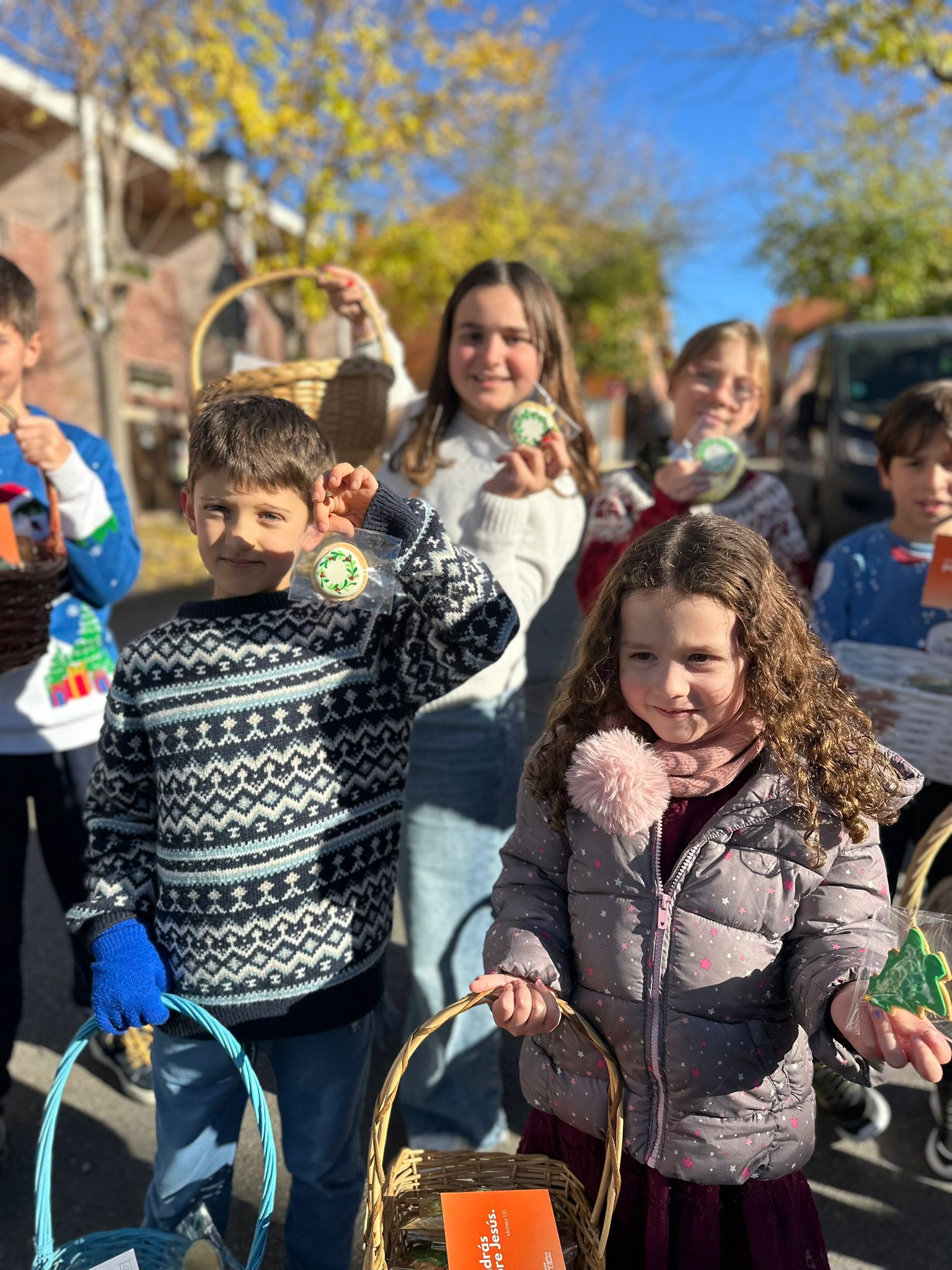 El domingo 15, nueve grupos compuestos por niños y adultos salieron con sus cestas a repartir ilusión y buenos deseos al vecindario. La tarea se completó el sábado 21, con una segunda visita a las casas que habían estado cerradas. Entre ambos días se visitaron 133 casas, nos abrieron sus puertas 87 en las que entregamos 310 galletas. Además, entre semana, hemos visitado 10 instituciones de Cobeña, elevando a 460 el número total de galletas entregadas.