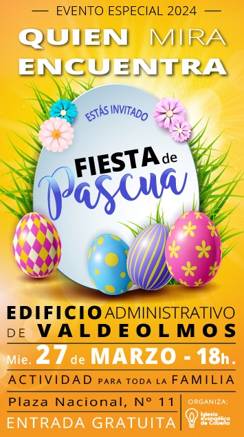 ¡Descubre el verdadero significado de la Semana Santa con nosotros!«Quien mira encuentra» es un evento familiar para todas las edades. ¿Quieres redescubrir la Semana Santa de una forma amena y divertida? Te invitamos a nuestro evento «Quien mira encuentra«, donde a través de vídeos y actividades, grandes y pequeños podrán comprender el verdadero significado deSigue leyendo «Quien Mira Encuentra»