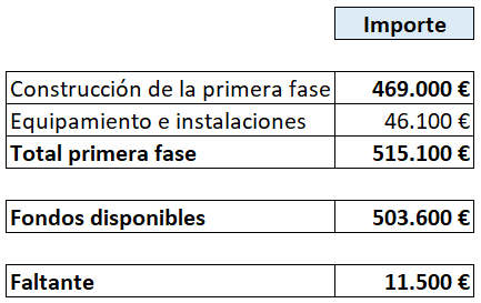 El presupuesto de la construcción resultaba elevado para una entidad del tamaño de la Iglesia Evangélica de Cobeña, pero gracias al ahorro constante de la propia entidad, al aporte de individuos y de otras iglesias, y a dos préstamos recibidos se logró reunir un capital suficiente como para acometer el proyecto. Esta cantidad cubría la construcción en sí, pero no la inversión necesaria para el equipamiento y las instalaciones que se están realizando desde enero de 2024.